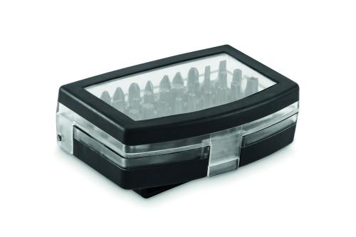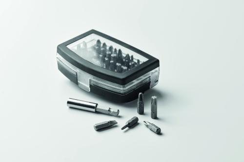 32 piece assorted screwdriver bit set with rotative clip holder.