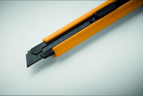 Retractable knife with ABS casing and carbon steel blade. Includes two extra replacement blades for extended use.