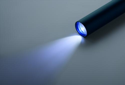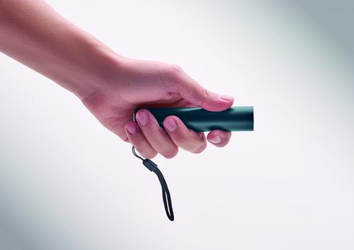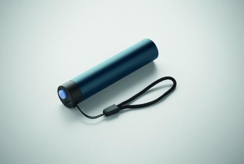 Recycled aluminium rechargeable torch 110 lumen with 3 light settings. 1 replaceable and rechargeable 14500 lithium battery 400 mAh.