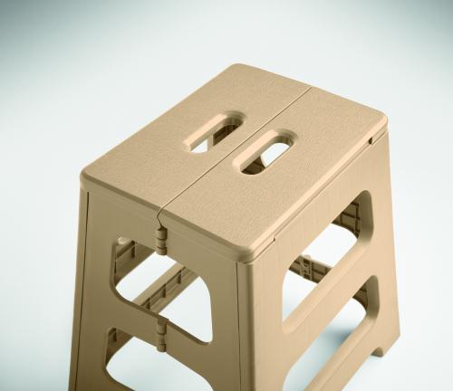 Portable foldable stool made of PP plastic with anti-slip surface. Supports up to 120kg load.