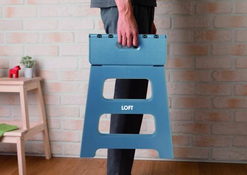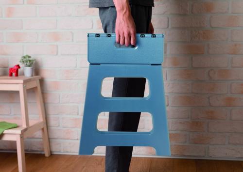 Portable foldable stool made of PP plastic with anti-slip surface. Supports up to 120kg load.