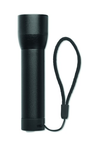 Recycled aluminium rechargeable torch with multiple light settings and zoom in/out function. Includes one replaceable 14500 lithium battery. Powerful and durable for everyday use.