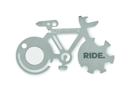 Multi-tool 11-in-1 stainless steel bicycle shaped. From bottle opener, knife, ruler or Phillips screwdriver tools.