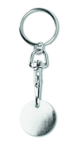Metal key ring trolley euro token. With imitation enamel coating on the front side. Size Ø23,2x2,1 mm thickness.