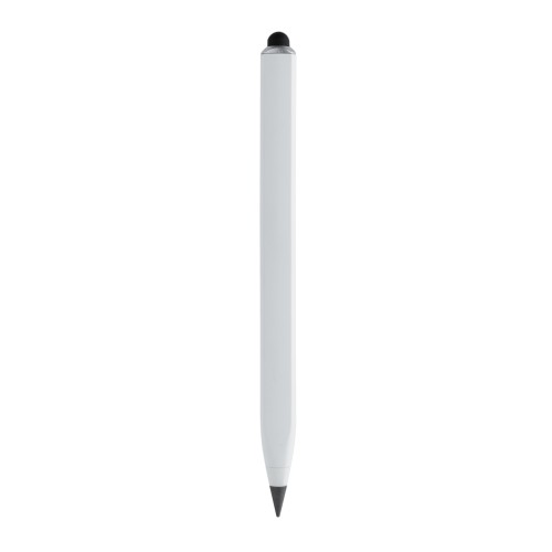 Modern infinity pen made with RCS certified recycled aluminum. Total recycled content: 40% based on total item weight. RCS certification ensures a completely certified supply chain of the recycled materials. Triangle shaped body with CM indication on one side and Inches on another side. Traditional wooden pencils write only up to around 200 metres but this Tree free infinity pencil, has a writing length of up to around 20000 metres using a graphite tip to produce a graphite line. Not only does it write like a pencil, but the markings can be erased. It works by leaving a graphite line on paper just like a regular traditional wooden pencil but it wears down so slowly, that it should outlast up to 100 traditional wooden pencils! With touch tip to operate mobile device. Packed in FSC® mix packaging.