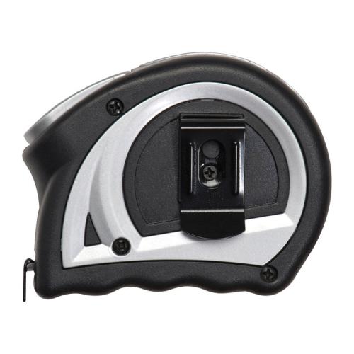 Large 3 meter steel measuring tape with robust plastic and metal coating, large figures, and a permanent stop bar. The practical belt clip and the small cord provide a safe grip.