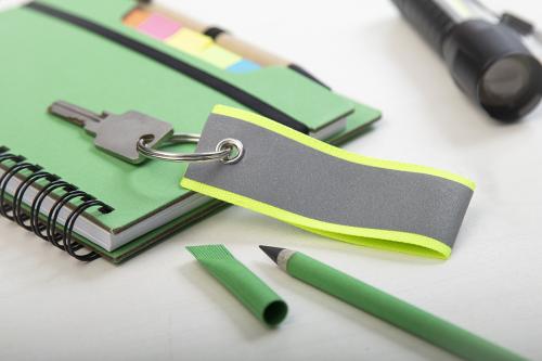 Reflective keyring with polyester strap and metal ring. For promotional use only, the product does not qualify as a Personal Protective Equipment.