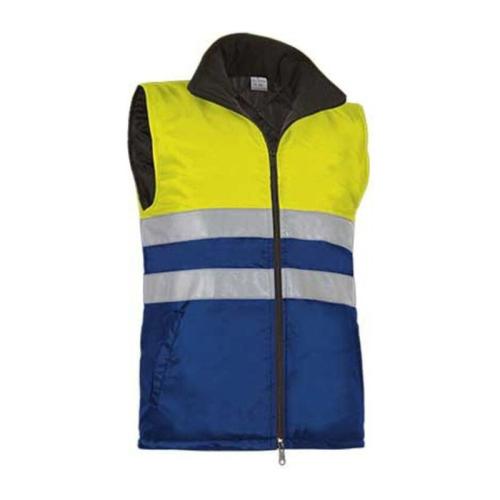 Outside waterproof fabric with polyurethane coating. Padded inside with lining 200 grs/m². Sewn retroreflective bands around the body. Central closure with double zip. Inside fleece neckband (more confortable). 2 lower pockets. Inside zip pocket. 10 units per box: 1 size, 1 color. Individual bag.