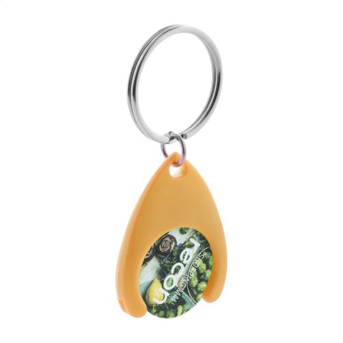 Plastic keyring with shopping trolley coin and metal ring. Coin size: ø24×2 mm.