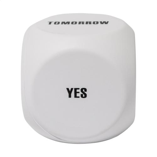 Dice shaped, decision maker antistress ball in PU foam. Including the following messages: Take a break, Tomorrow, Maybe, Yes, No and a blank side for printing.