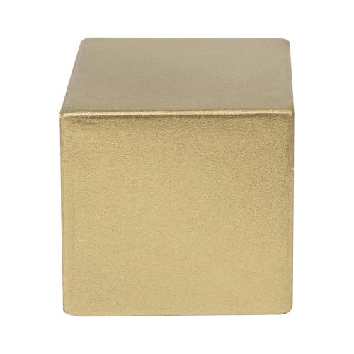 Cube shaped antistress ball in PU foam with metallic finish.