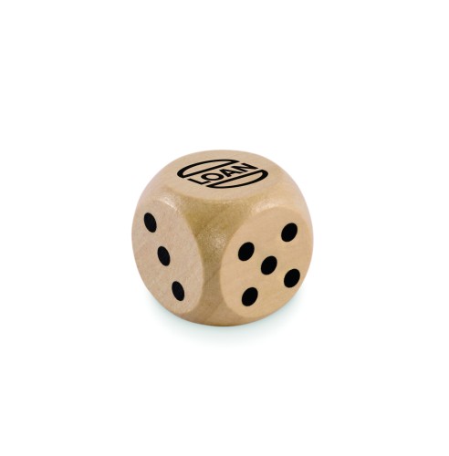 Dice in schima wood. 3cm diameter. This item can only be delivered in multiples of inner packaging being 50 pcs. 1 side reserved for printing. FSC®-certified | FSC 100%, W15.2, FSC-C213206