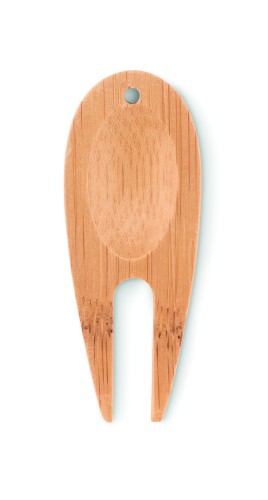 Bamboo golf divot tool. Bamboo is a natural product, there may be slight variations in colour and size per item, which can affect the final decoration outcome.