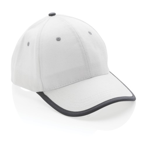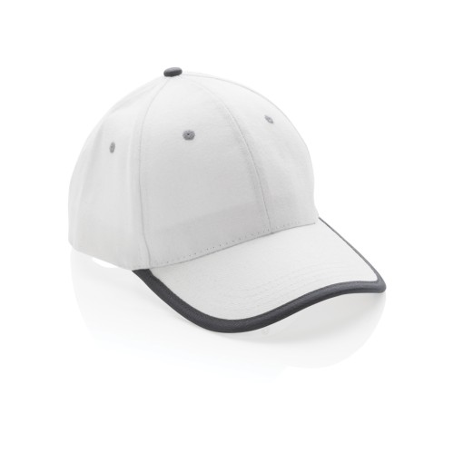 Tell a true story about sustainability and wear it with pride! This 6 panel contrast cap with curved visor is made with brushed recycled 280gr cotton that is embedded with AWARE™ tracer technology. With AWARE™, the use of genuine recycled fabric materials and water reduction impact claims are guaranteed. Save water and use genuine recycled fabrics. If you choose this item you save 250 litres of water. With the focus on water, 2% of proceeds of each Impact product sold will be donated to Water.org. The contrast cap has a dark grey binding and velcro closure. Water savings are based on figures when compared to conventional fibre. This calculated indication is based on reliable LCA data as published by Textile Exchange in their Material Snapshots 2016.