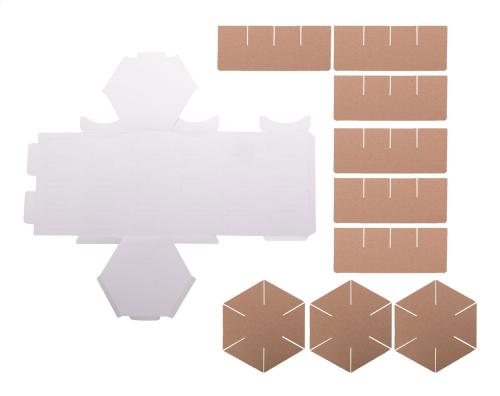 Custom made, full colour printed hexagonal Advent calendar in paperboard with 24 compartments. Delivered flat-packed, without sweets. MOQ: 50 pcs.