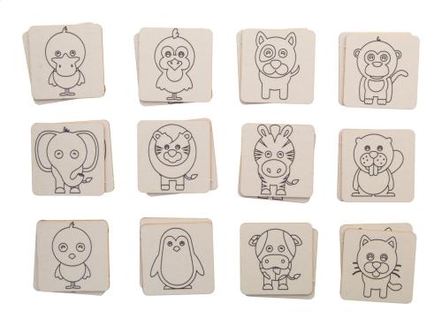 Colouring memory game in cotton carry pouch. Includes thematic paperboard memory game (24 tiles) and wooden coloured pencils (12 pcs) in paper box.