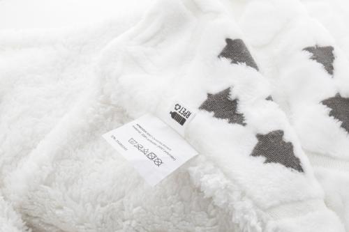 Luxury dual-layer RPET Christmas blanket with embossed winter theme pattern. With 270 g/m² RPET flannel fleece and reversible 210 g/m² RPET sherpa fleece lining. Wrapped in ribbon and printable paper card.