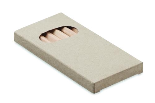 6 coloured pencils in recycled paper box.