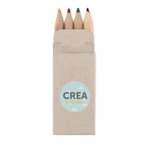 4 coloured mini pencils in recyled paper carton box.