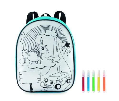 Backpack in 600D polyester with 5 markers. Standard imprint.