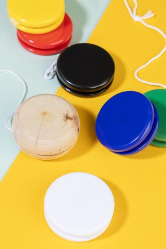 Natural wooden yo-yo with white cotton line.