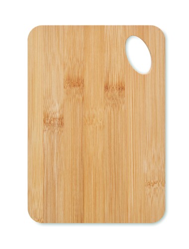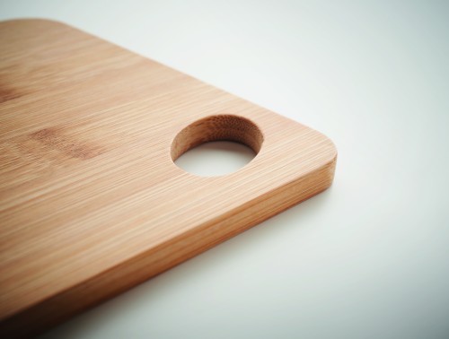 Cutting board in bamboo wood with hanging hole. Bamboo is a natural product, there may be slight variations in colour and size per item, which can affect the final decoration outcome.