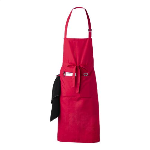 Coloured apron with front pockets. Material: 80% polyester / 20% cotton.