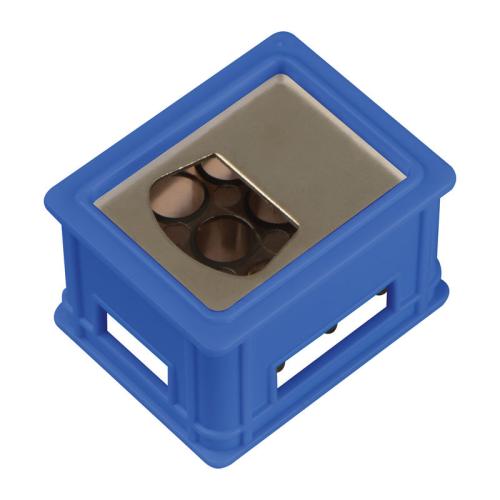 Plastic bottle opener in the shape of a beer crate. We will print your logo directly on the opener.