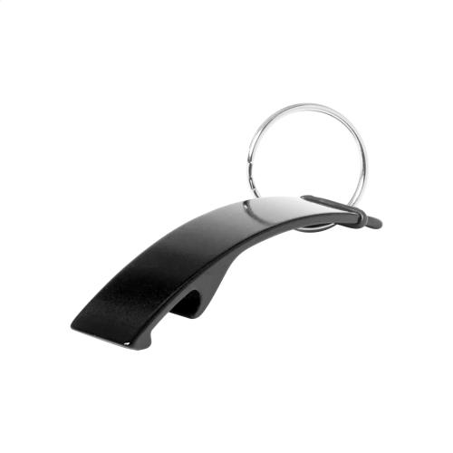 Aluminium bottle opener with keyring.