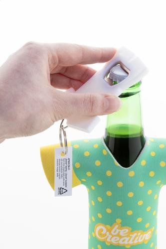 Sport dress shaped recycled ABS plastic bottle opener with metal keyring.