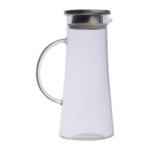 Glass carafe with stainless steel cap and 1350 ml capacity. The cap has 2 different openings: a sieve and a large opening.