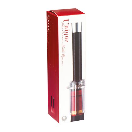Air pressure corkscrew - opening a wine bottle has never been so easy. Push the tip of the corkscrew into the cork and hold the lid tight, pump air 7-8 times into the bottle and the cork will pull itself out of the bottle neck.