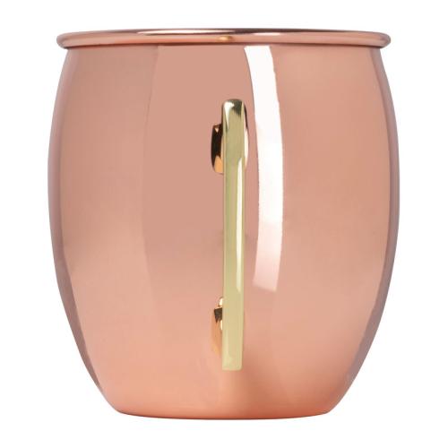 Stainless steel mug with copper coating, golden handle and a capacity of 500ml. Ideal for cocktails or other drinks.