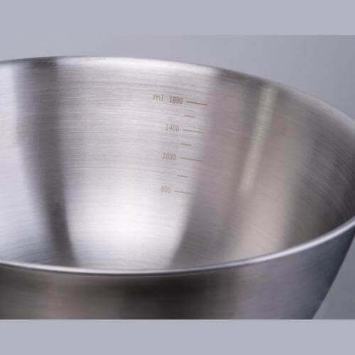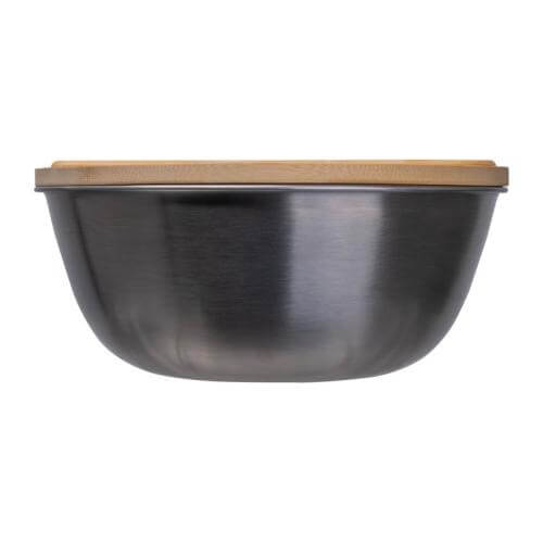 Stainless steel salad bowl with bamboo lid including cutlery and 2000ml capacity.