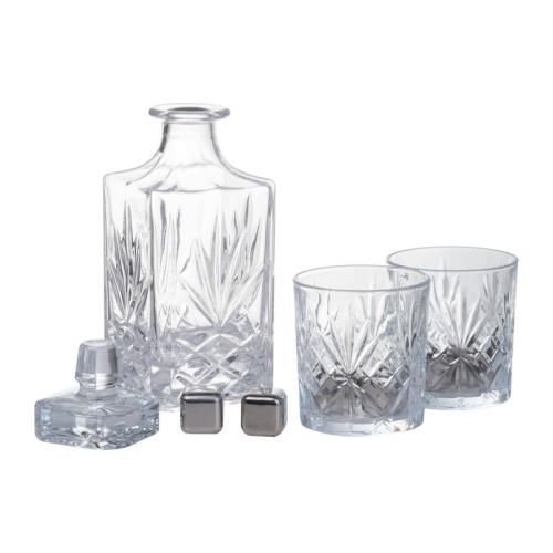 High-quality whiskey set with decanter (800 ml) and two borosilicate glasses (250 ml), including 6 stainless steel ice cubes in a bamboo box.