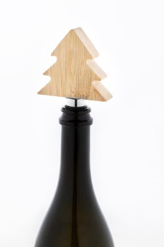 Metal wine stopper with bamboo Christmas tree shaped decoration.