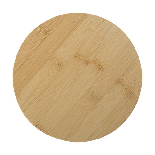 4 pc bamboo inlay stainless steel wine set in round bamboo box. Including corkscrew, drop stopper, nozzle and plug.
