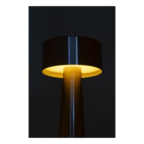 Golden finish metal table lamp with 24 LEDs, adjustable brightness and 800 mAh USB rechargeable battery. With warm, natural and cool light modes. Including USB charger cable.