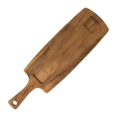 Practical set of serving board which is made of acacia wood and two ceramic bowls for sauces will become a great supplement in your kitchen. Serve different types of cheeses, hams and bread on the board with a sauce or garnish in small bowls