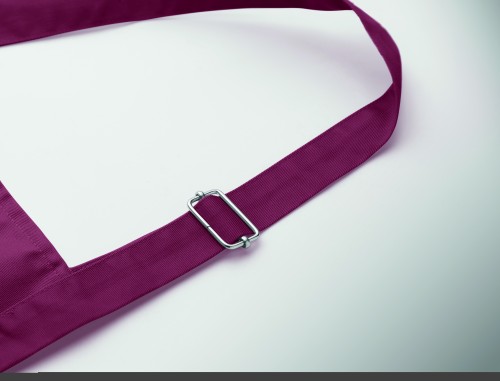 Long adjustable kitchen apron in 240 gr/m² polycotton (35% cotton, 65% polyester) with two front pockets and adjustable strap with metal buckle.