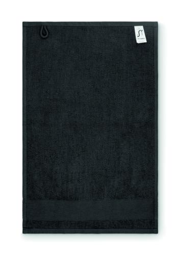 Guest towel made of 100% cotton, 380 gr/m² fabric with cotton hanger loop. Soft and absorbent design. Size 30 cm x 50 cm.