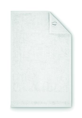 Guest towel made of 100% cotton, 380 gr/m² fabric with cotton hanger loop. Soft and absorbent design. Size 30 cm x 50 cm.