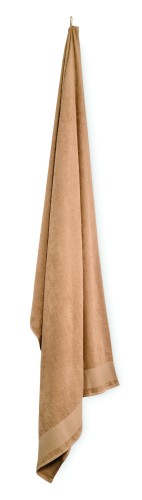 Bath towel made of 100% cotton, 380 gr/m² fabric with cotton hanger loop. Soft and absorbent design. Size 100 cm x 150 cm.