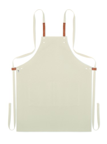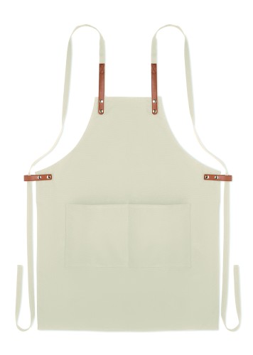 Adjustable kitchen apron with 2 front pockets in 340 gr/m² organic cotton/canvas.