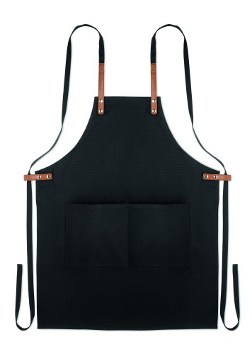Adjustable kitchen apron with 2 front pockets in 340 gr/m² organic cotton/canvas. Presented in individual box.