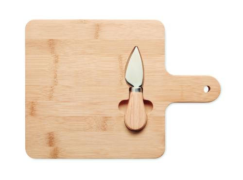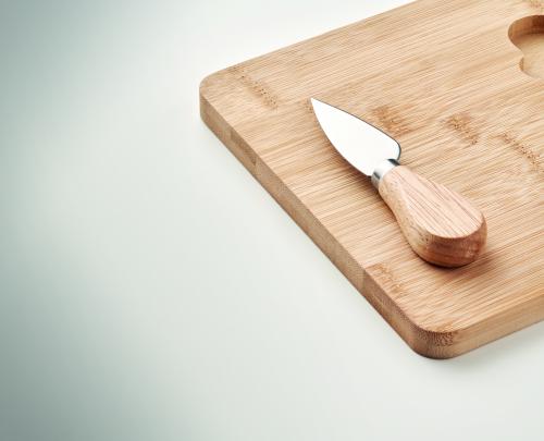 Bamboo Cheese set serving board with serving knife. Bamboo is a natural product, there may be slight variations in colour and size per item, which can affect the final decoration outcome.