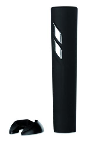 Electric wine bottle opener in ABS housing in black matt finish. Includes a foil cutter stand. 4 AA batteries not included.