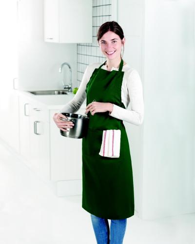 Adjustable kitchen apron with 2 front pockets in 10% cotton/90% polyester, 190gr/m².