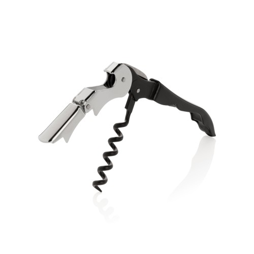 This waiters corkscrew is a classic corkscrew design that has a foil cutter blade, a two stage cork lifter and bottle opener. Packed in gift box.