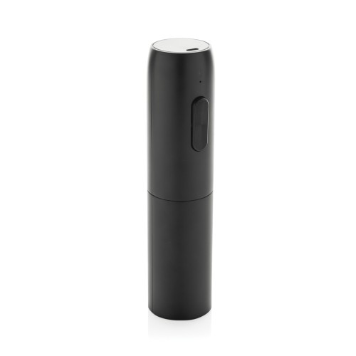 The Vino re-chargeable electric wine opener is a sleek and convenient solution for effortlessly opening bottles at home or for entertaining. Its matte black design houses a 500 mAh Li-ion battery, capable of opening 20–30 bottles on a full charge and recharging in 3 hours via the included 30 cm black TPE USB-A to USB-C cable. The opener features simple up and down button operation and an indicator light for easy use. The case is PVC-free and packaged in FSC® certified packaging. Input current: 5V /1A.